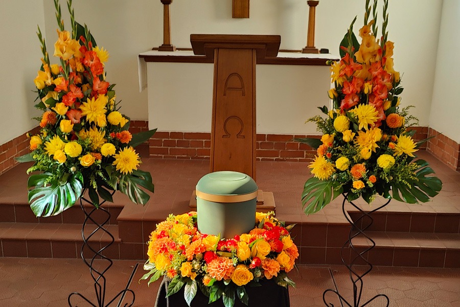 Bei der Trauerfeier können die Angehörigigen vor Ort sein und den Sarg auf seinen letzten Weg begleiten.